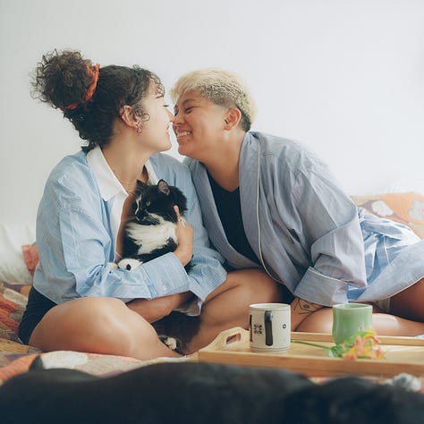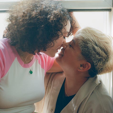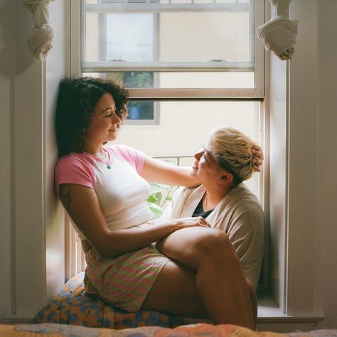 Maya and I met for coffee in the summertime and decided to pursue shooting the video on film as a celebration of queer love, with a home movie vibe. Our keywords were: intimate, natural, cute af, at-home, carefree, in love, playful, mundane yet meaningful.